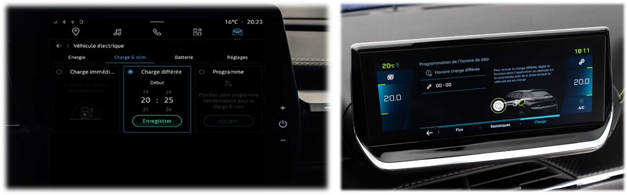 Comme il est possible de préconditionner la température de l’habitacle du véhicule, il est possible de dire à quelle heure il doit commencer la charge. Généralement cette programmation s'effectue par l'IHM.