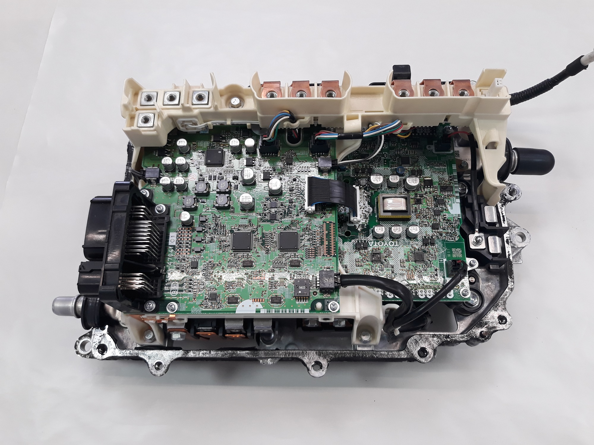 L'électronique de puissance joue un rôle essentiel au bon fonctionnement du véhicule. Elle réalise l'interface entre le courant continu de la batterie de traction et le courant alternatif du ou des moteur(s) électrique(s) présent(s) dans le véhicule.