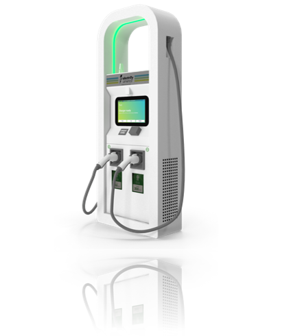 - Permet la recharge rapide de tous types de véhicules avec un temps de charge maitrisé. Charge complète d'une batterie de 50kWh en moins d'une heure trente.