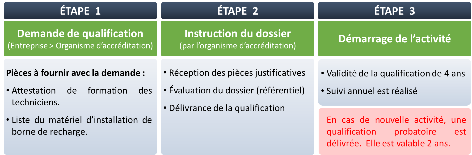 Pour obtenir la certification "IRVE" l'entreprise doit faire une demande auprès d'un organisme accrédité par le COFRAC.