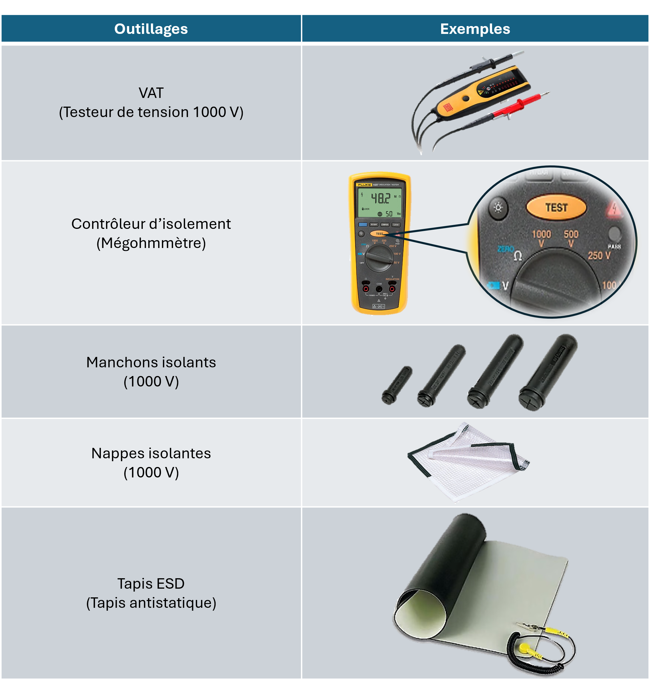 Selon la norme NF C18-550, L'ensemble des outils utilisés lors d'intervention sur chaine de traction doivent répondre à un niveau d'isolation de 1000 Volts.