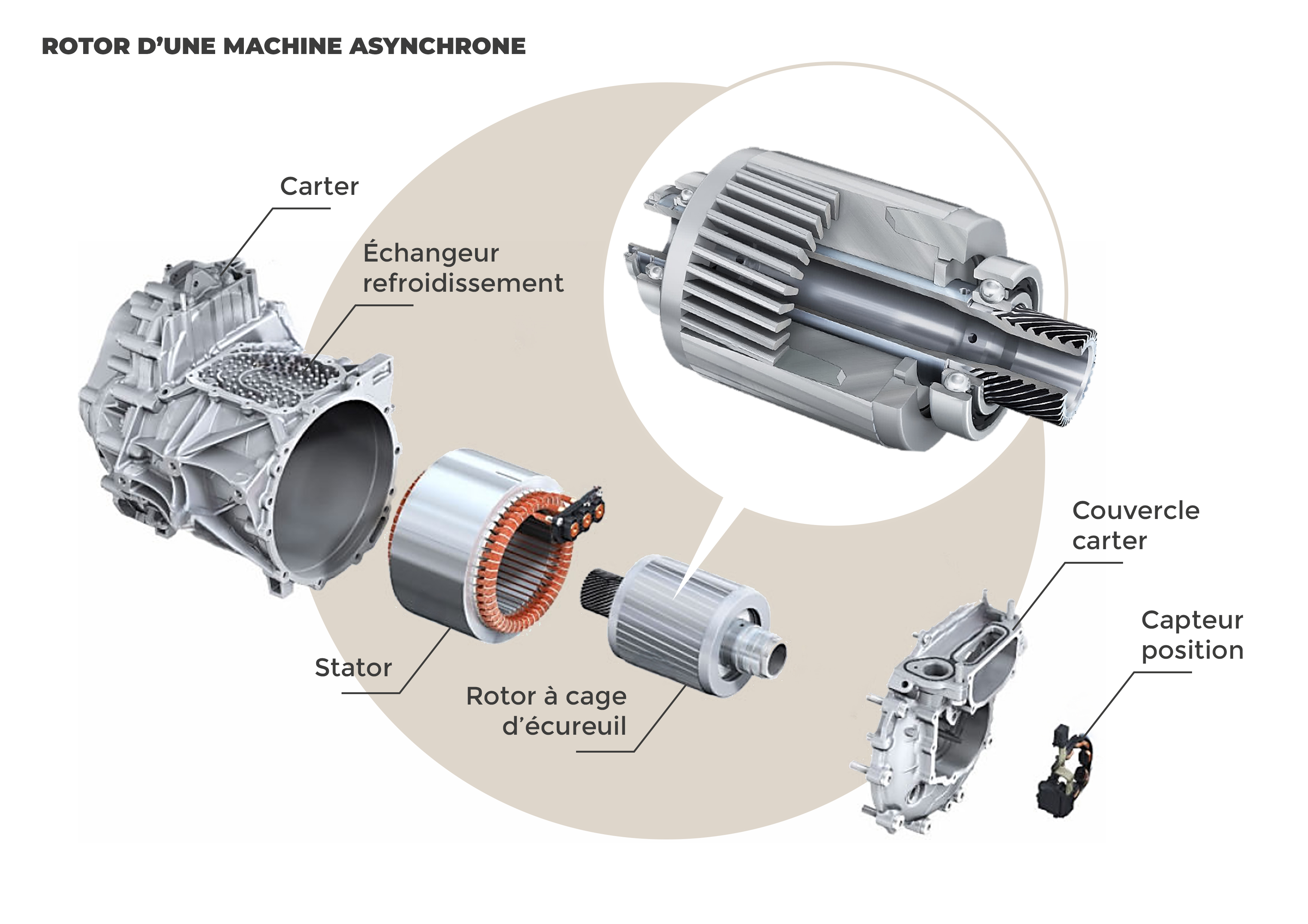 Les machines asynchrones, également appelées machines à induction, représentent l’une des solutions les plus pertinentes pour l’électrification des véhicules, en concurrence directe avec les machines synchrones. Leurs conceptions simples, leurs grandes fiabilités mécaniques et leurs coûts compétitifs en font des choix privilégiés pour l'automobile, ainsi que pour les TGV et les métros, où elles assurent une propulsion performante.