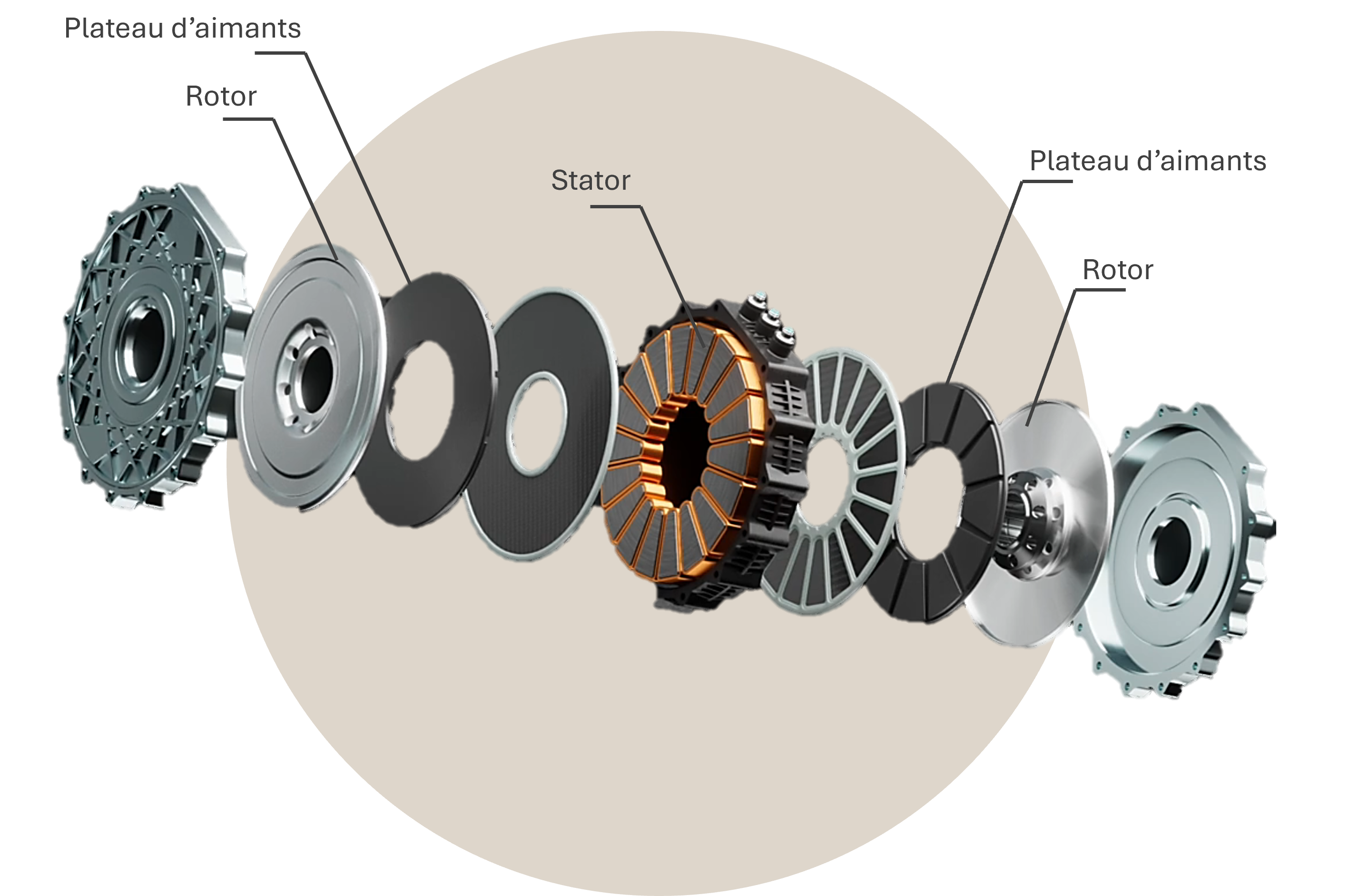 Dans cette fiche, nous prendrons deux sociétés qui développent des machines à flux axial, WHYLOT (Français),et YASA (Anglais), pour illustrer cette technologie.