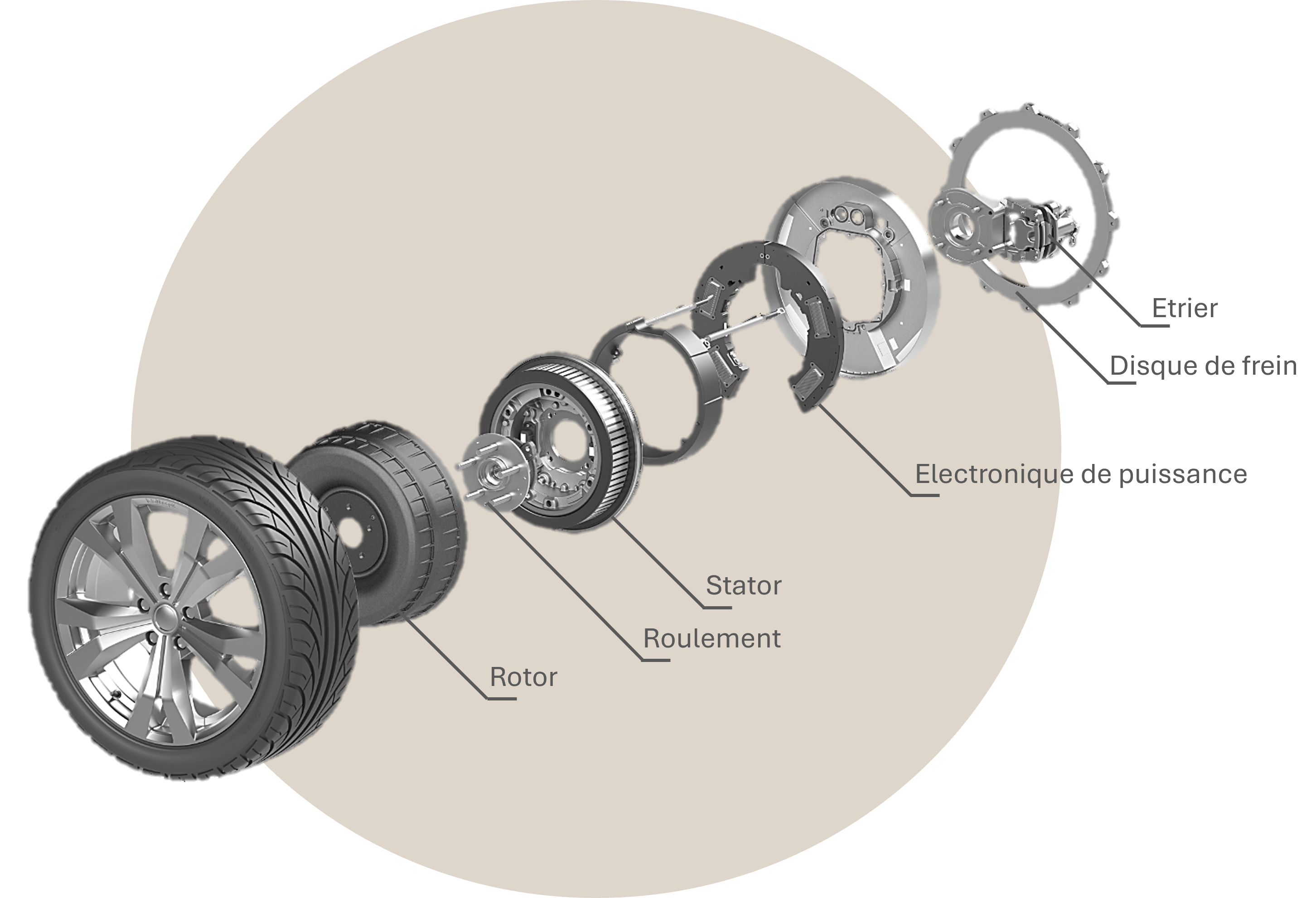 La machine à flux axial n'est pas encore une machine équipant les roues, pour deux raisons :