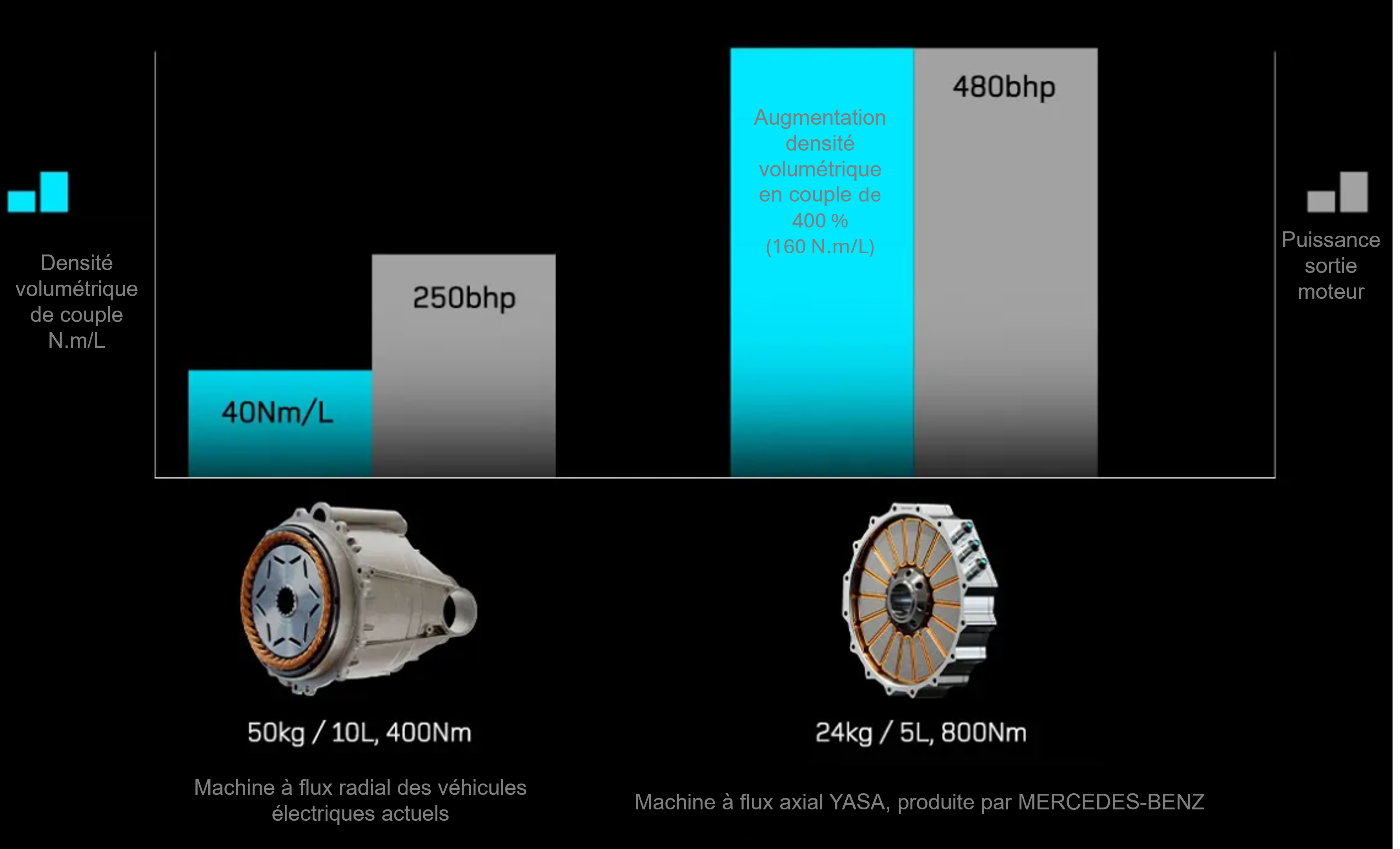 La machine à flux axial a dépassé tous les records de densité de puissance, connues à ce jour dans l'automobile, toutes motorisations confondues.