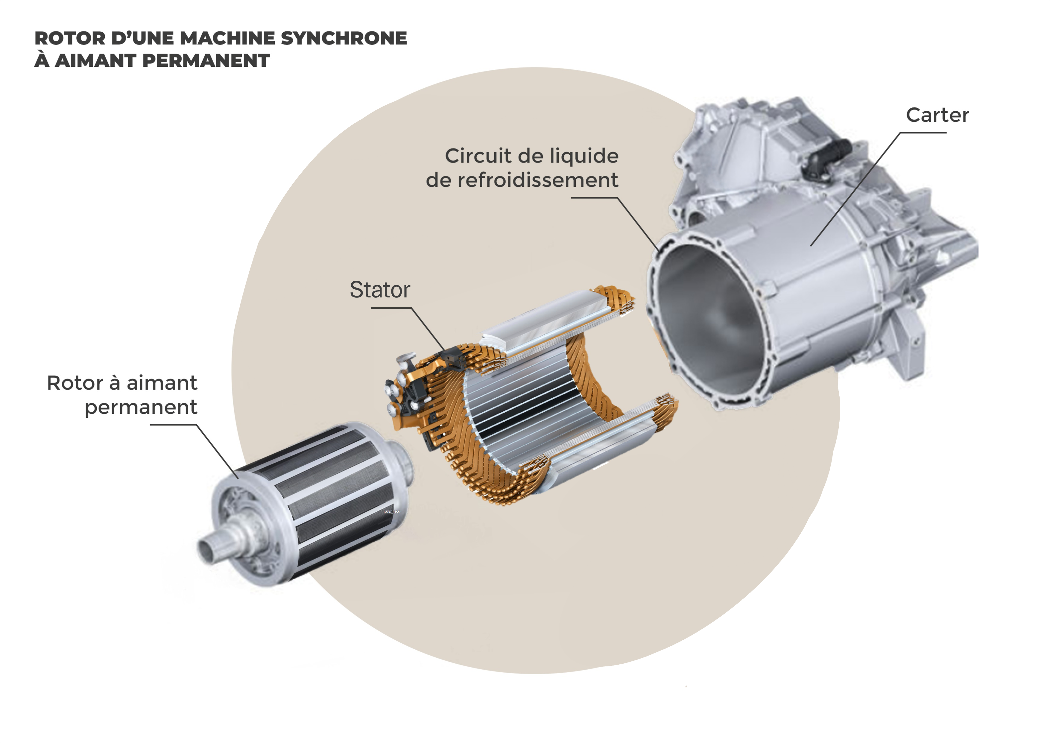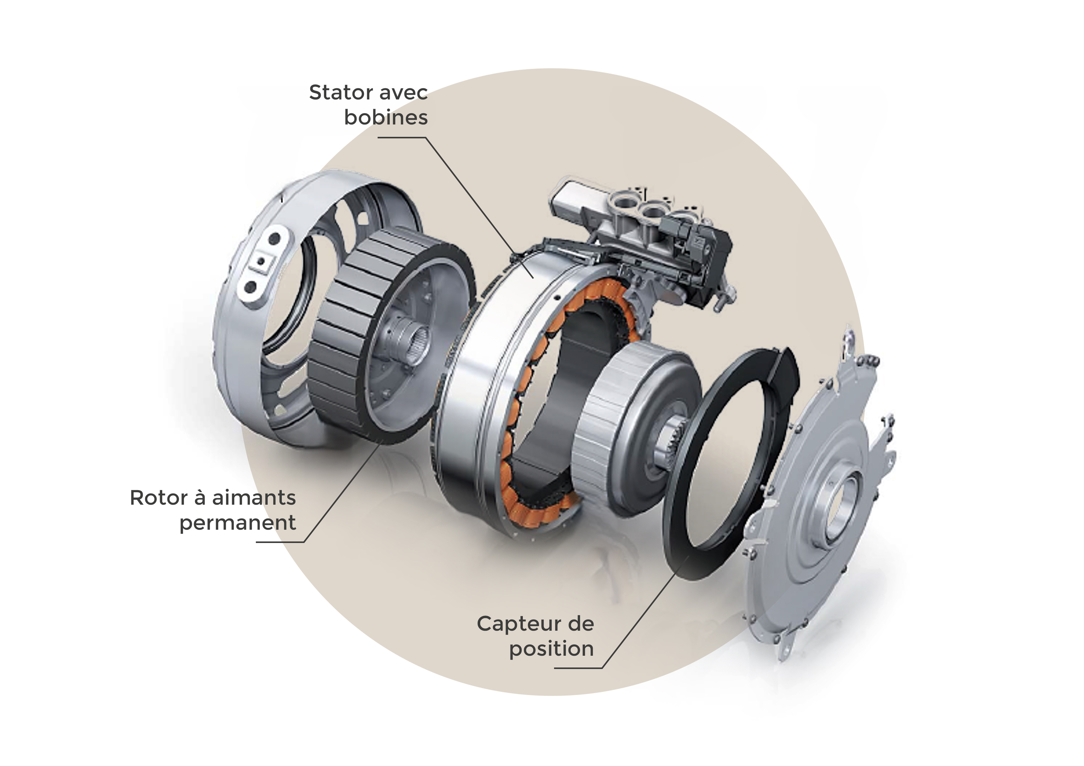 Machine électrique synchrone à aimants permanents, montée sur des véhicules hybrides.