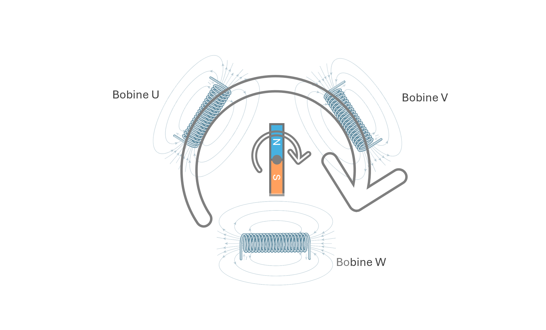 Le champ magnétique dans le rotor et le champ magnétique créé dans le stator, sont les forces de bases qui vont mettre en mouvement le rotor.