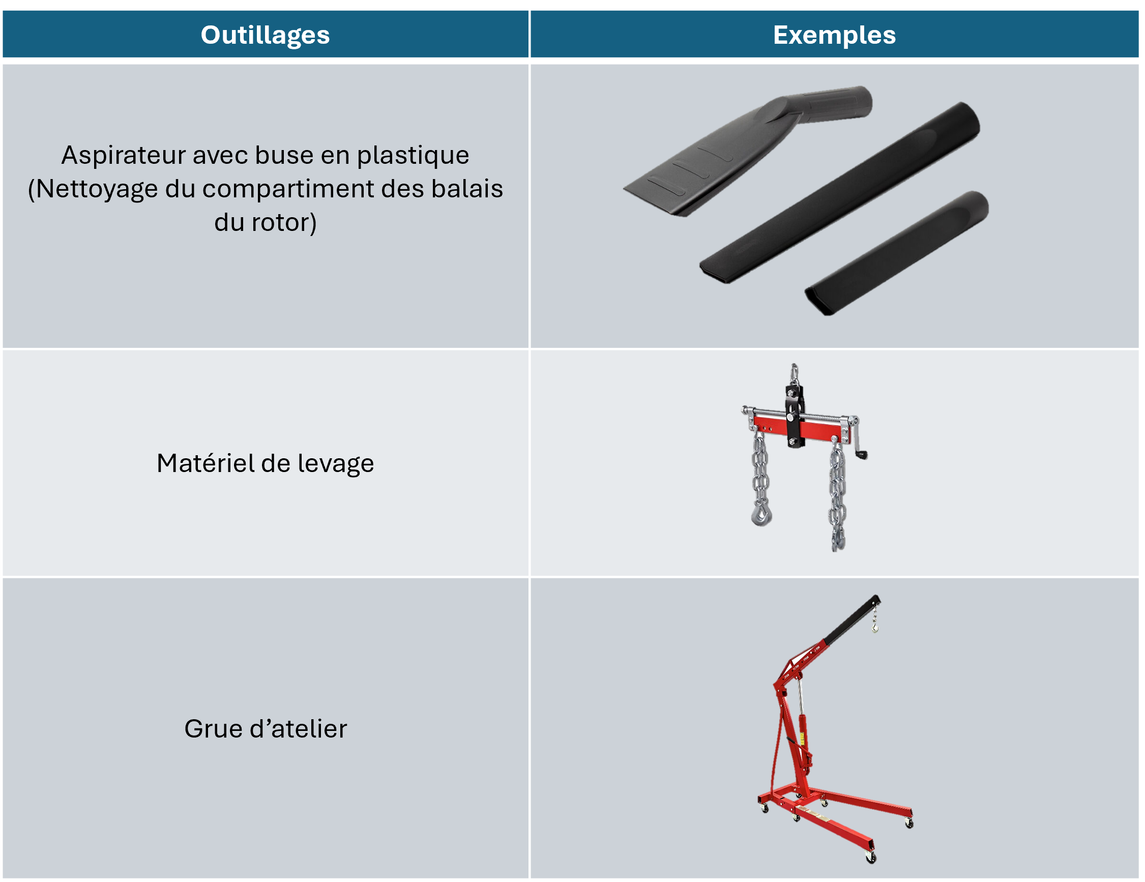- Vidange et remplissage d'huile moteur, lors d'intervention sur la machine électrique,