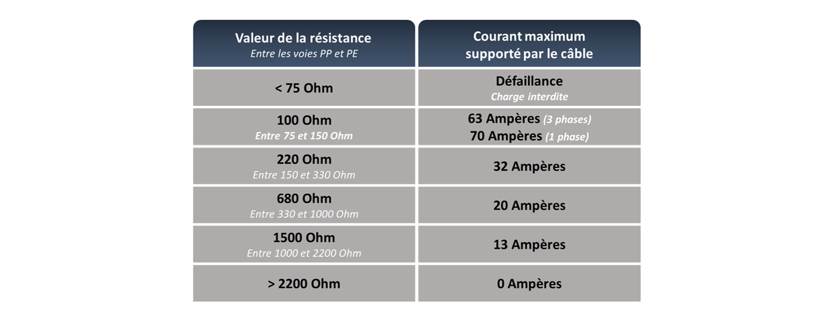 Le chargeur du véhicule préservera toujours le câble de recharge en ajustant la puissance délivrée. Le but est de ne pas dépasser la valeur maximum que le câble peut supporter.