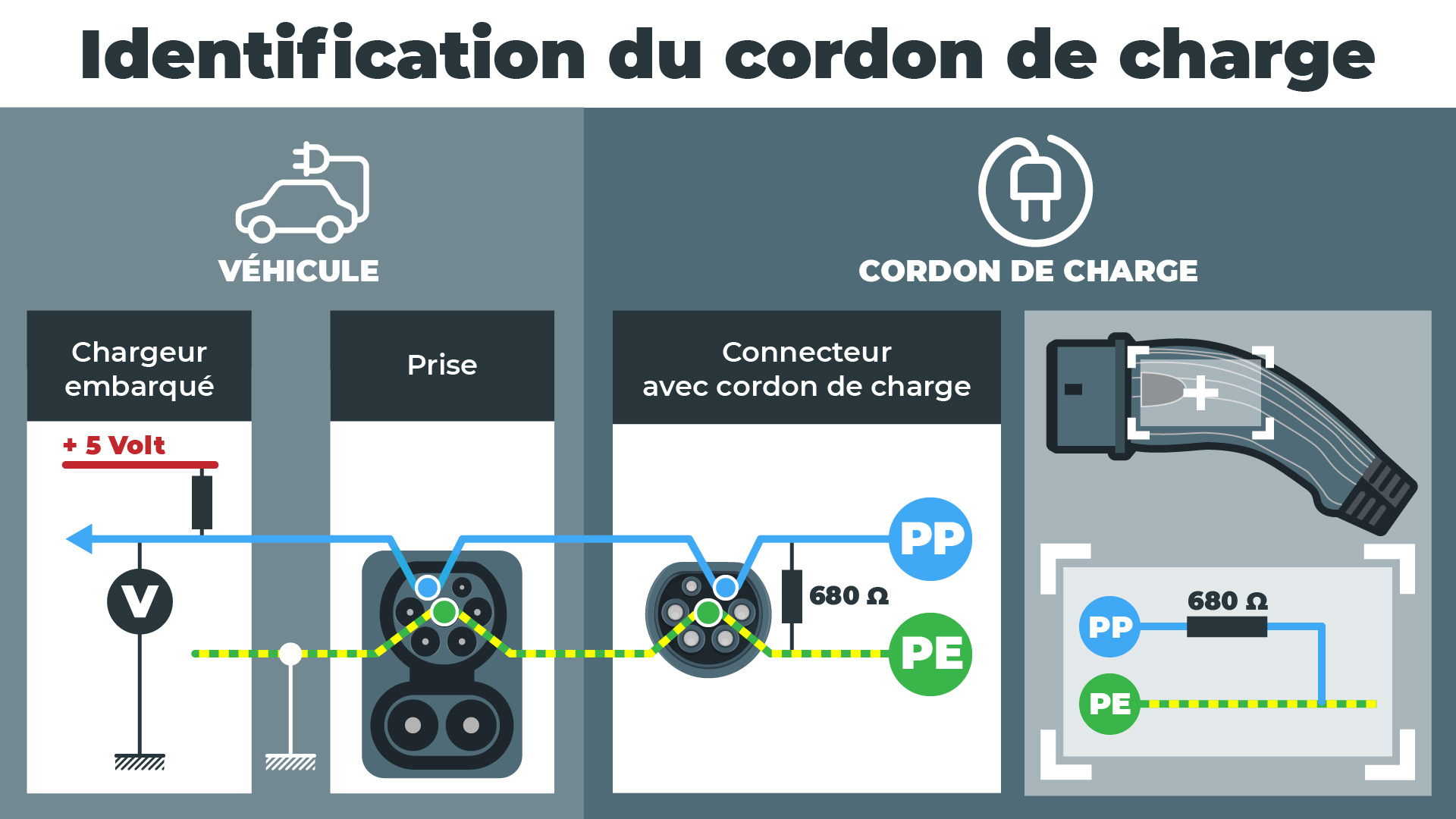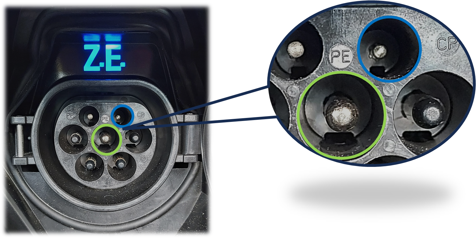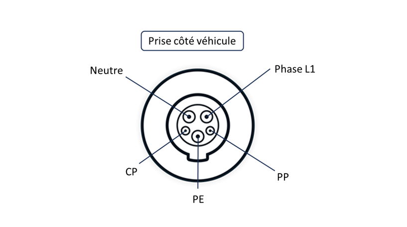 - Lors d'un débranchement c'est la voie CP qui est déconnecté en premier. Cette coupure arrête le processus de charge de la batterie, avant que les contacts de puissance dans la prise soient déconnectés.