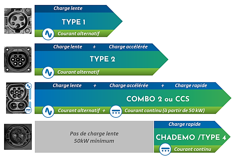 "Un point de recharge rapide en courant alternatif ouvert au public dispose au minimum d'un connecteur de type 2, tel que décrit dans la norme NF EN 62196-2."