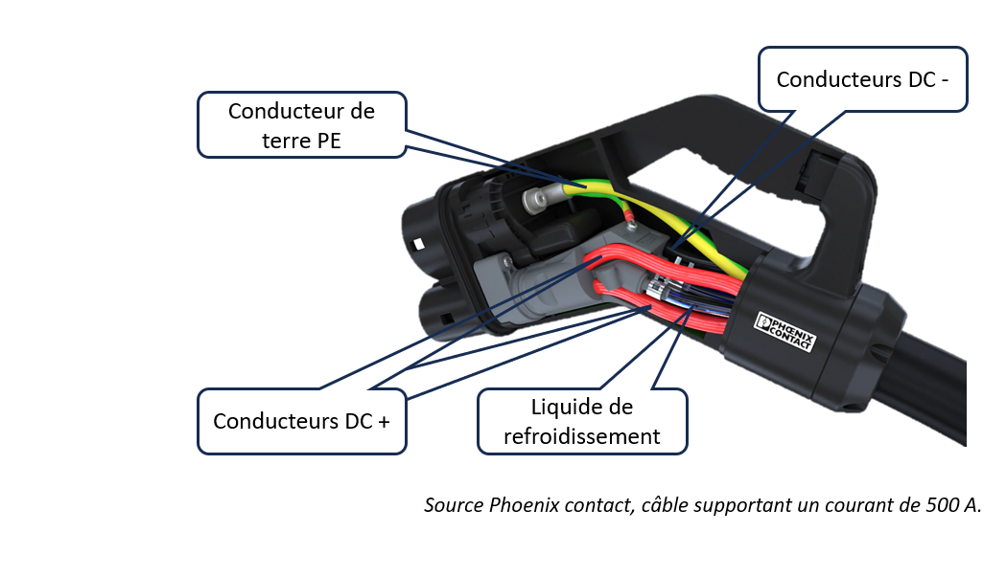 Câble fixé à la borne de recharge : Oui, systématiquement, car la puissance dépasse les 22 kW.