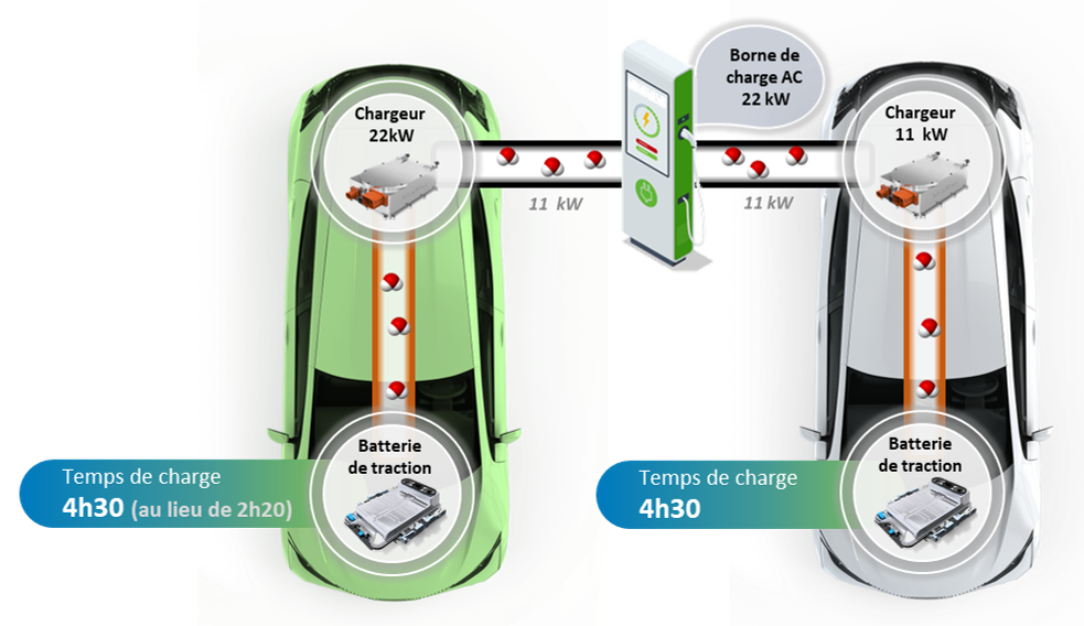 Lorsqu'on veut imager la puissance de charge d'un véhicule, il faut penser à la loi du plus faible car ici, c'est lui qui remporte la bataille.