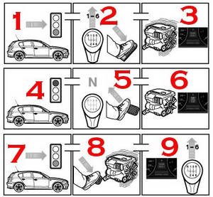 - Il enfonce la pédale d'embrayage, le moteur redémarre.