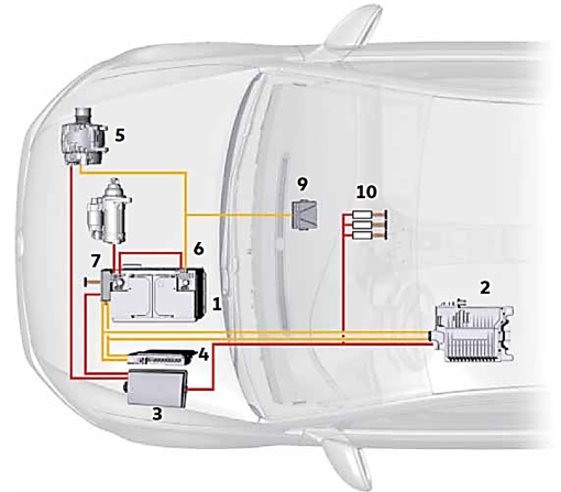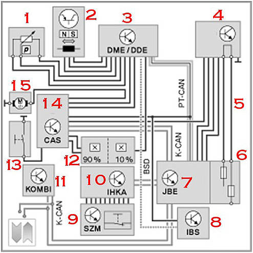 Le maître de la fonction est le calculateur de contrôle moteur, DME pour un moteur essence (Digital Motor Electronics) ou DDE pour un moteur diesel (Digital Diesel Electronics). Celui-ci aura donc dans sa cartographie, un sous-programme "start/stop".